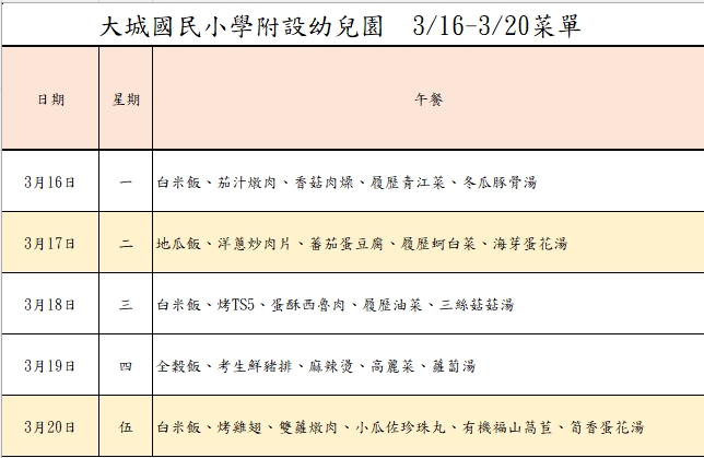 本校幼兒園廚房餐廳近期將進行改善工程,為落實校園食安保障,工程期間午餐將調整由合格廠商供應團膳。