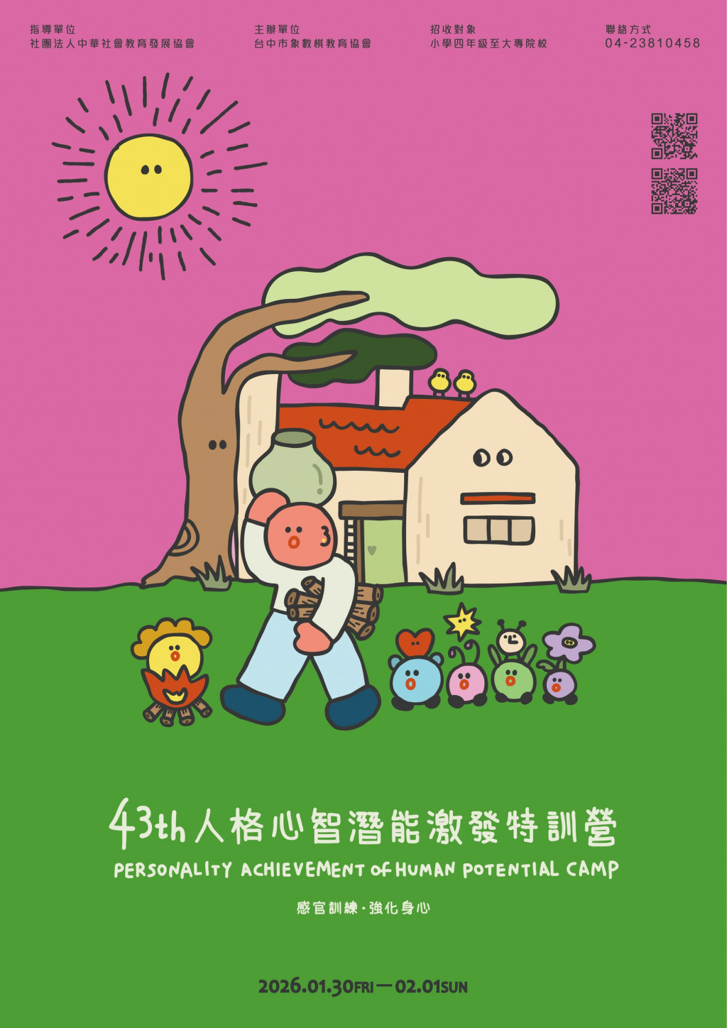 台中市象數棋教育協會為推廣品德教育,辦理「第43屆人格心智潛能激發特訓營」乙案,歡迎有興趣同學參加。