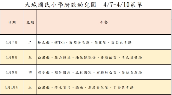 幼兒園114學年度第二學期第7週餐點表